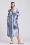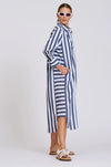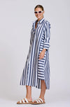 Introducing Andrea, a fresh and bold new addition to our coveted shirtdress collection. Andrea is crafted from 100% cotton wide stripes, featuring detailed placket, French cuffs and flattering side panels.