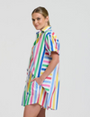 A Short that is made to flatter, featuring bold stripes, a curved hem, elasticised waist with drawstring and deep side pockets, wear with your favourite tee of as a set.