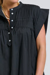 Beautiful in every way, featuring a detailed pleated front and back, flattering cuffed short sleeve, popover style with a generous wide A line swing hem & of course with pockets! Summer style never looked so fresh!
